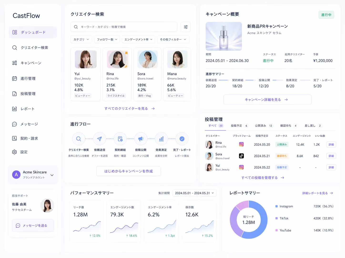 CastFlowは、インフルエンサーマーケティングを データドリブンに最適化するプラットフォームです。
